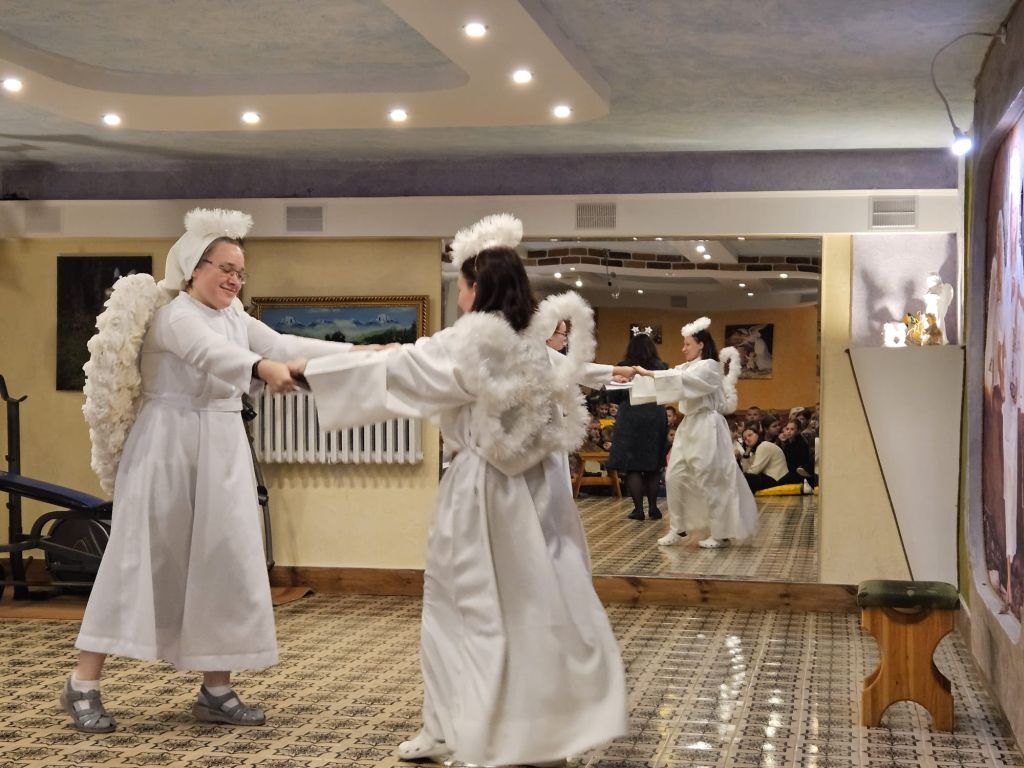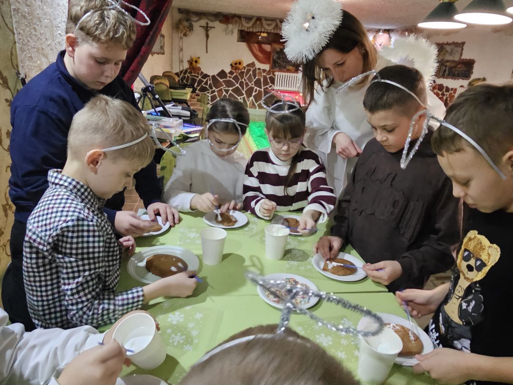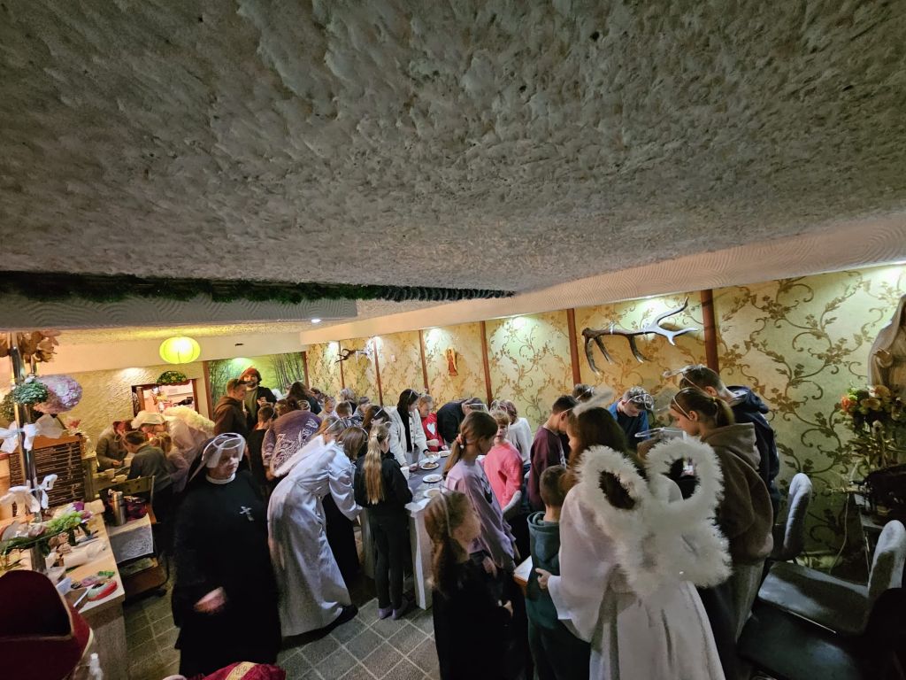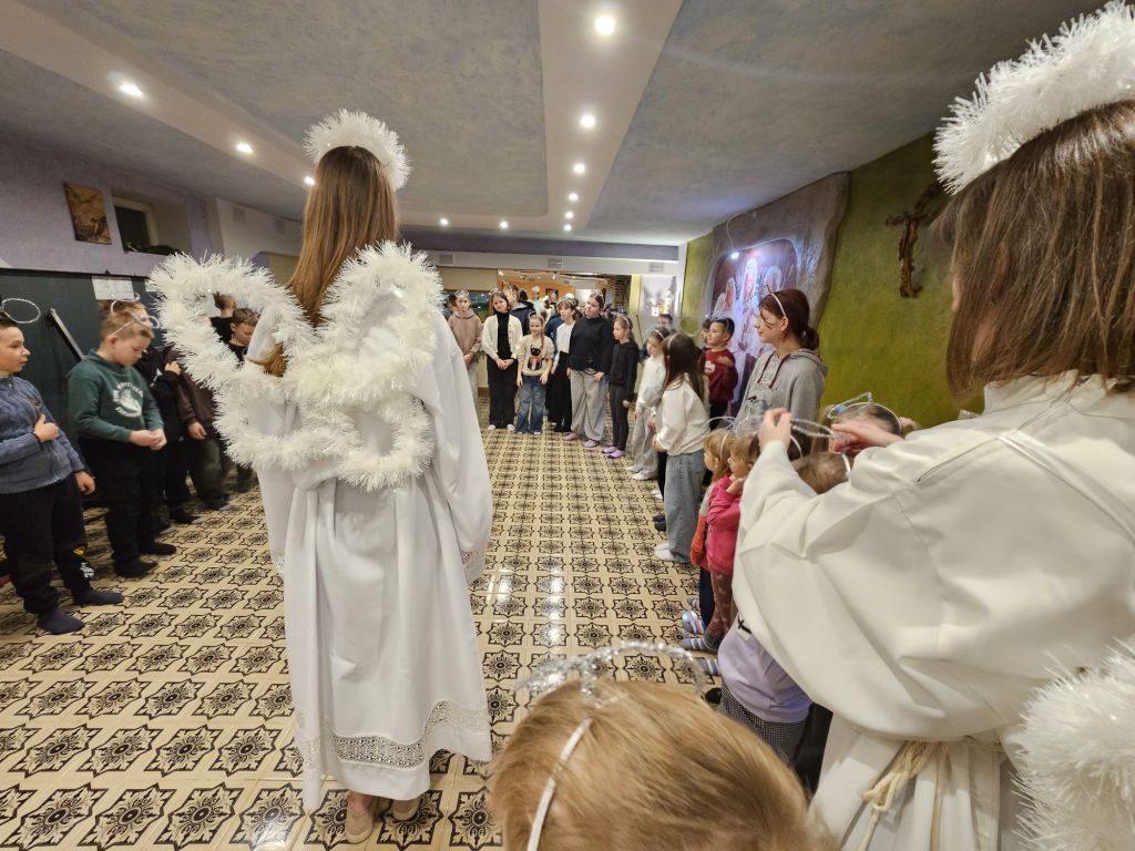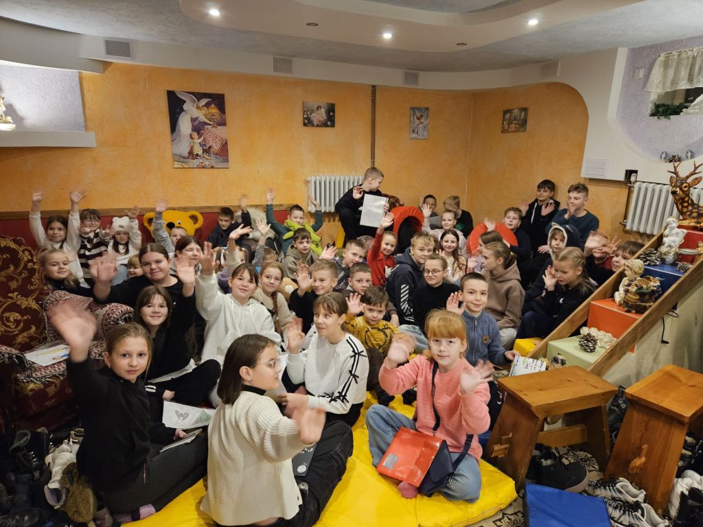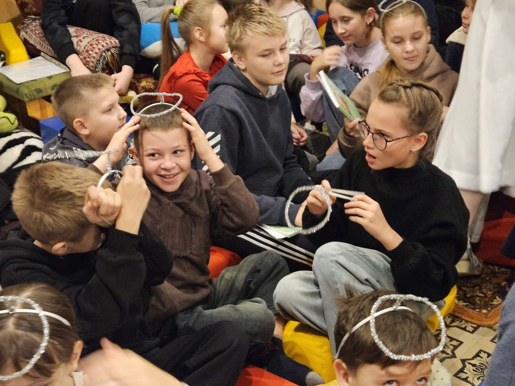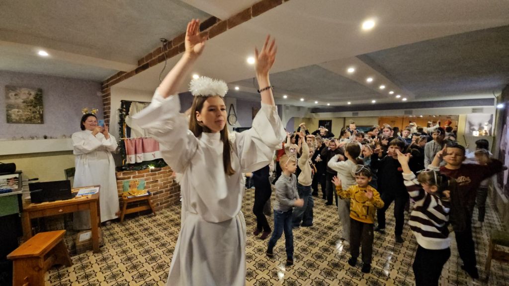 São Nicolau na sala infantil em Szydłowicze, Bielorrússia, em 6 de dezembro de 2025